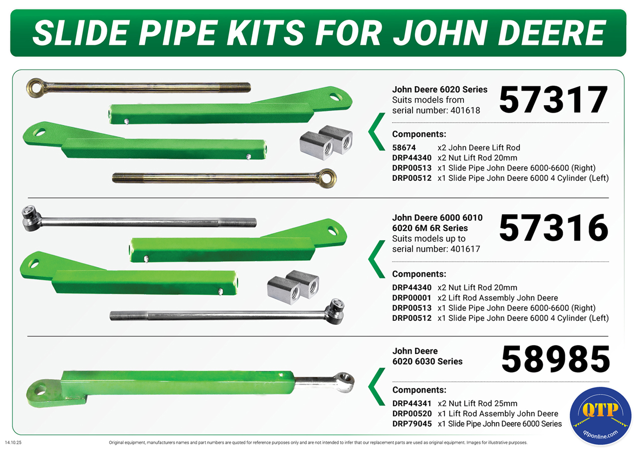 QTP | Slide Pipe Kit | John Deere 6020 Series | 57317 | L168647 | L102495 | AL170953 | AL170952